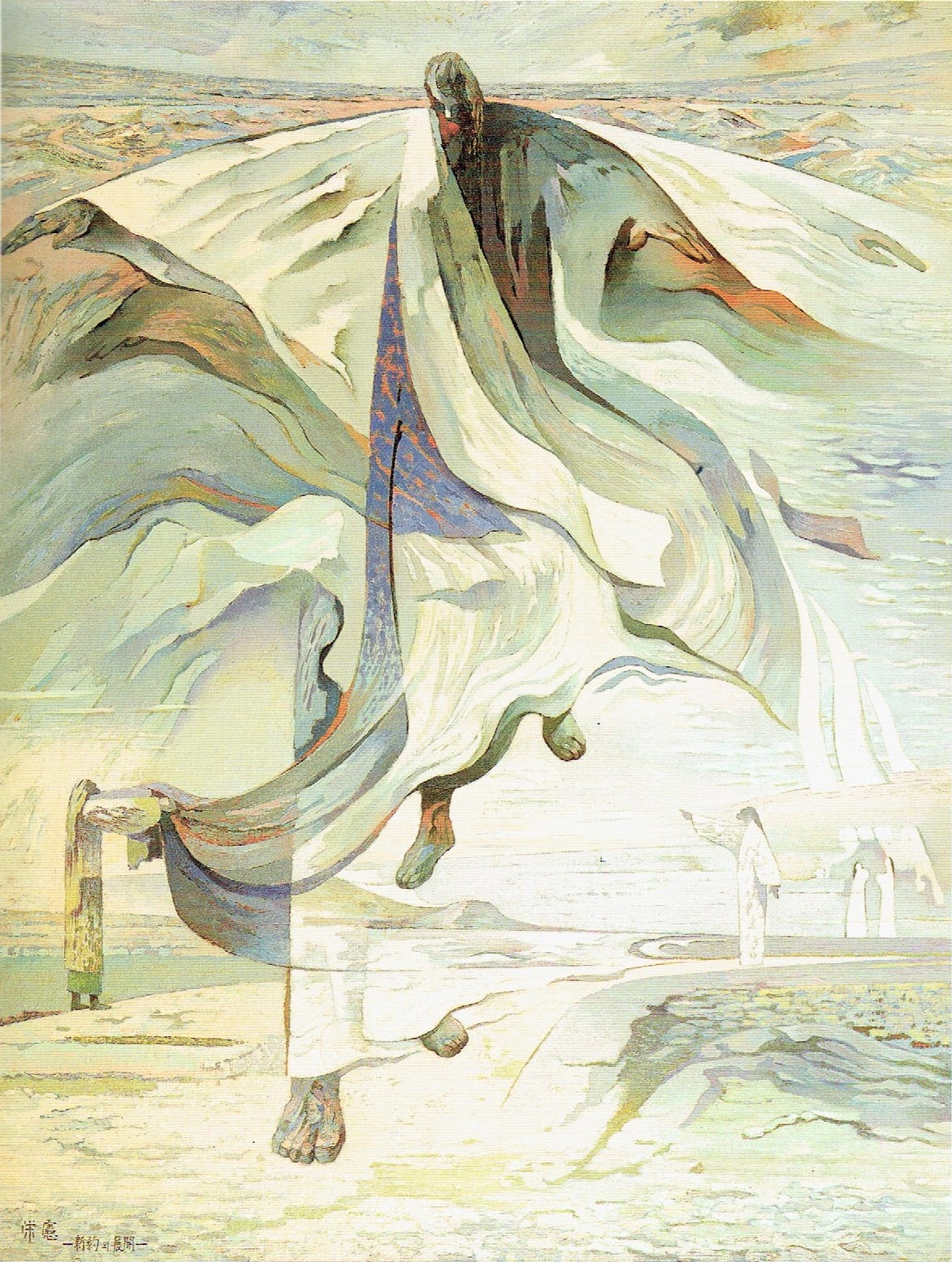 “I believe that the pointing figure in the middle ground is a second manifestation of Jesus. Whereas in the foreground he brings under and fills up, here he sends out; he points to the vast needs that still exist just across the way. … Drawing on a representational cliché—Jesus with open arms—Shin Young-Hun suggests that the gospel doesn’t just beckon the individual into one great big warm bear hug with Jesus, just you and him; rather, it compels us to reach out to others with the love we’ve experienced in Christ.”